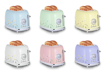 SKU: PS688T 2-slice toaster Electric Griddle Sandwich Light Blue Flowers SUS304 Food Grade 6 Browning Levels 1.5-inch extra-wide slot 3 Functions - Defrost/Reheat/Cancel Cheese Toaster Pop-up hamburger Stylish high lift bar Removable crumb tray for easy cleaning Vintage style Factory Direct Special Offers Quality Assurance Product description of light blue flowers