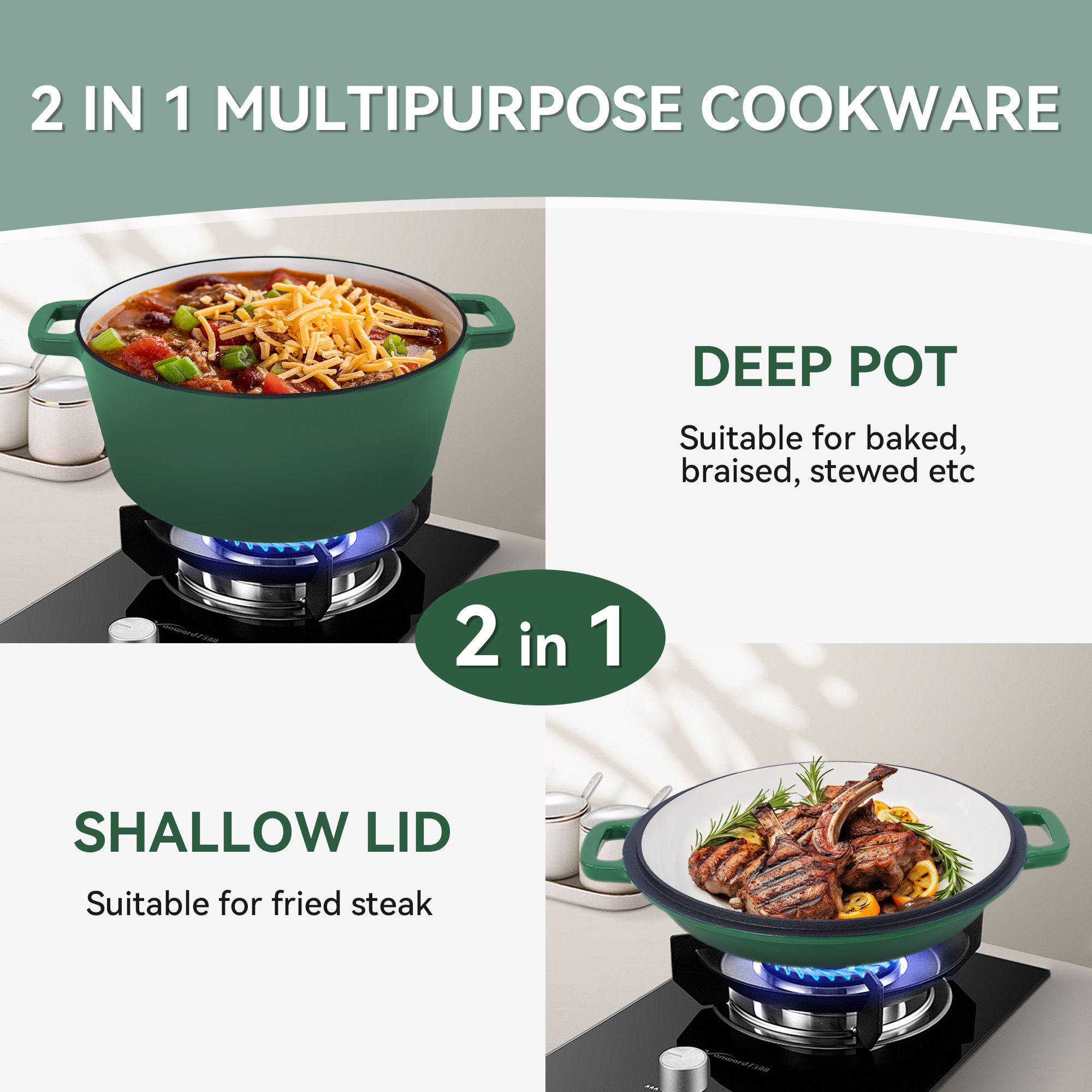 Enameled Cast Iron Dutch Oven with Serving Lid + ENCLOSED THERMAL CIRCLE Design