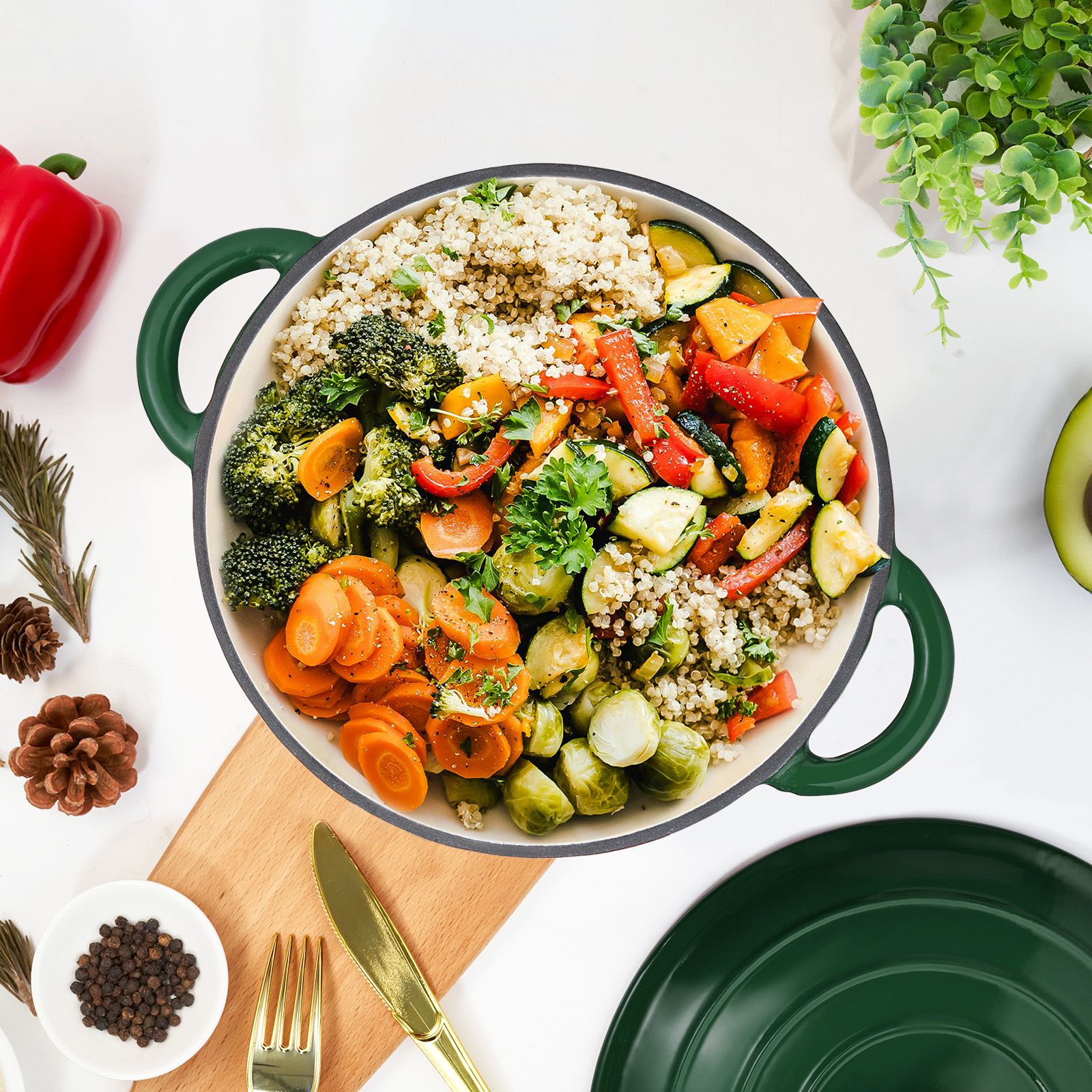 SPECIAL CYCLE DESIGN :This cast iron dutch oven has a special circular shower design. The water vapor circulates in the pot, which can better maintain the original nutrition of the food during cooking, and also provides the function of heat preservation.