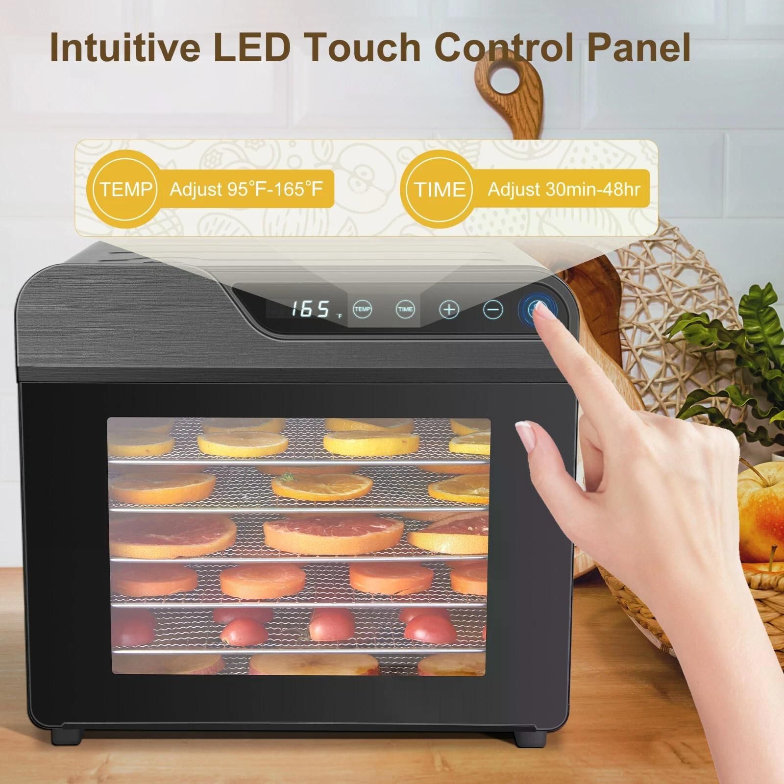 [Precise Temperature & Time Control]Set the timer for up to 48 hours and choose your desired drying temperature between 95 °F–165 °F accurately down to the degree using the digital control panel. The dehydrator will automatically shut off when the timer ends. Overheat protection will activate if the meat dehydrator overheats.