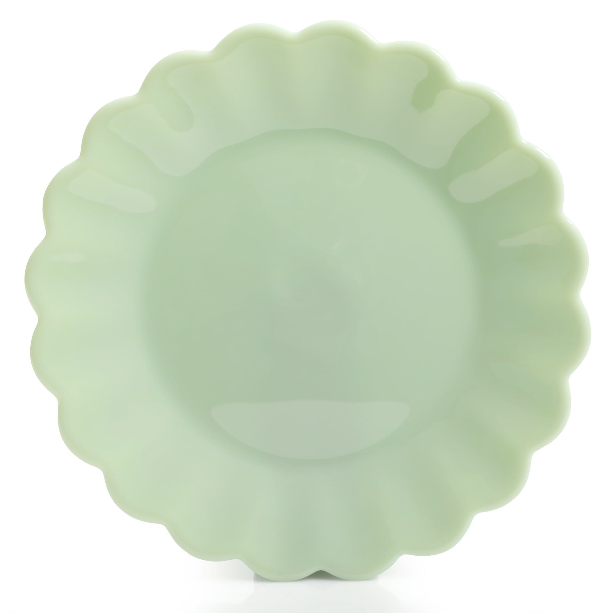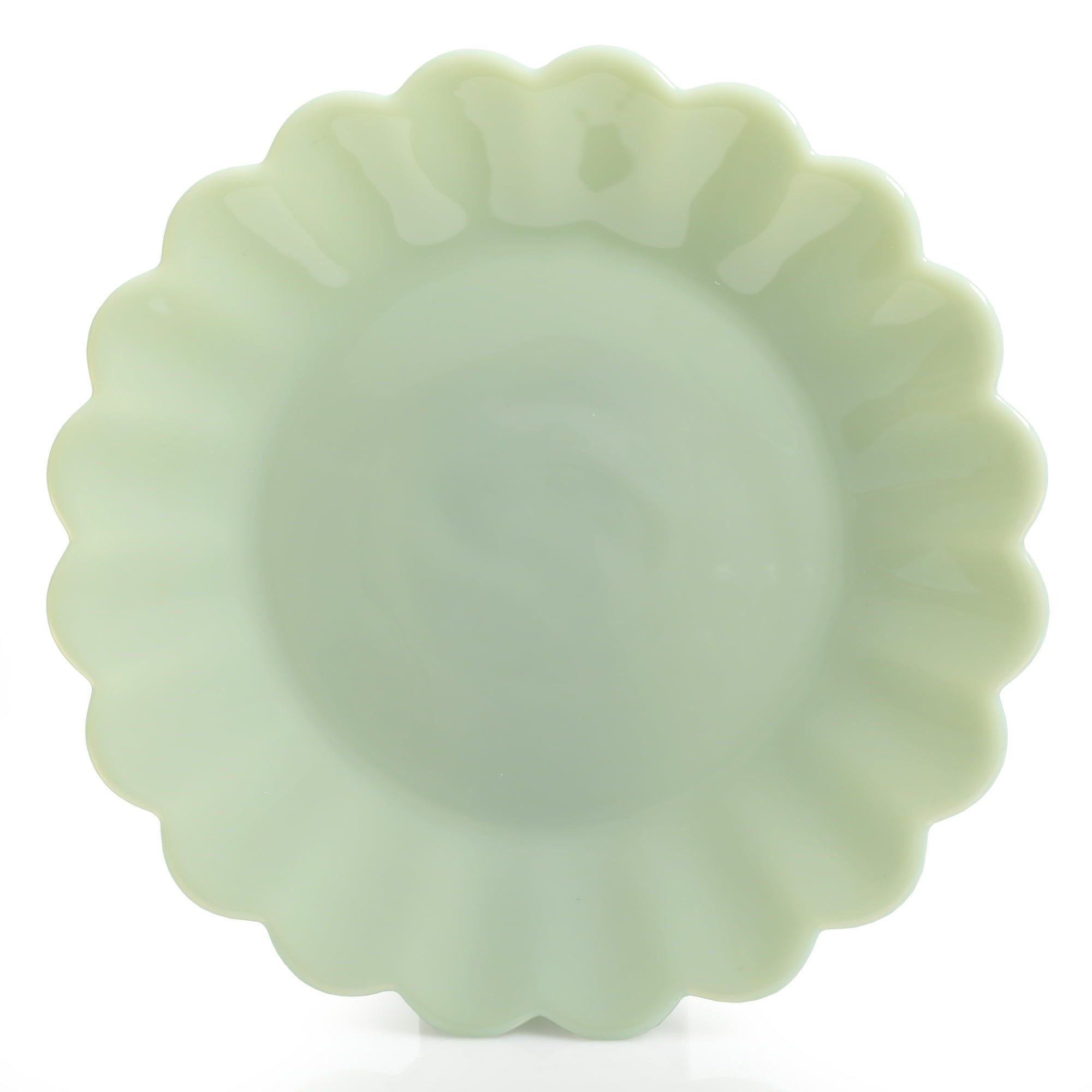 2.Featuring jade-colored milk glass and scalloped edges for a retro look