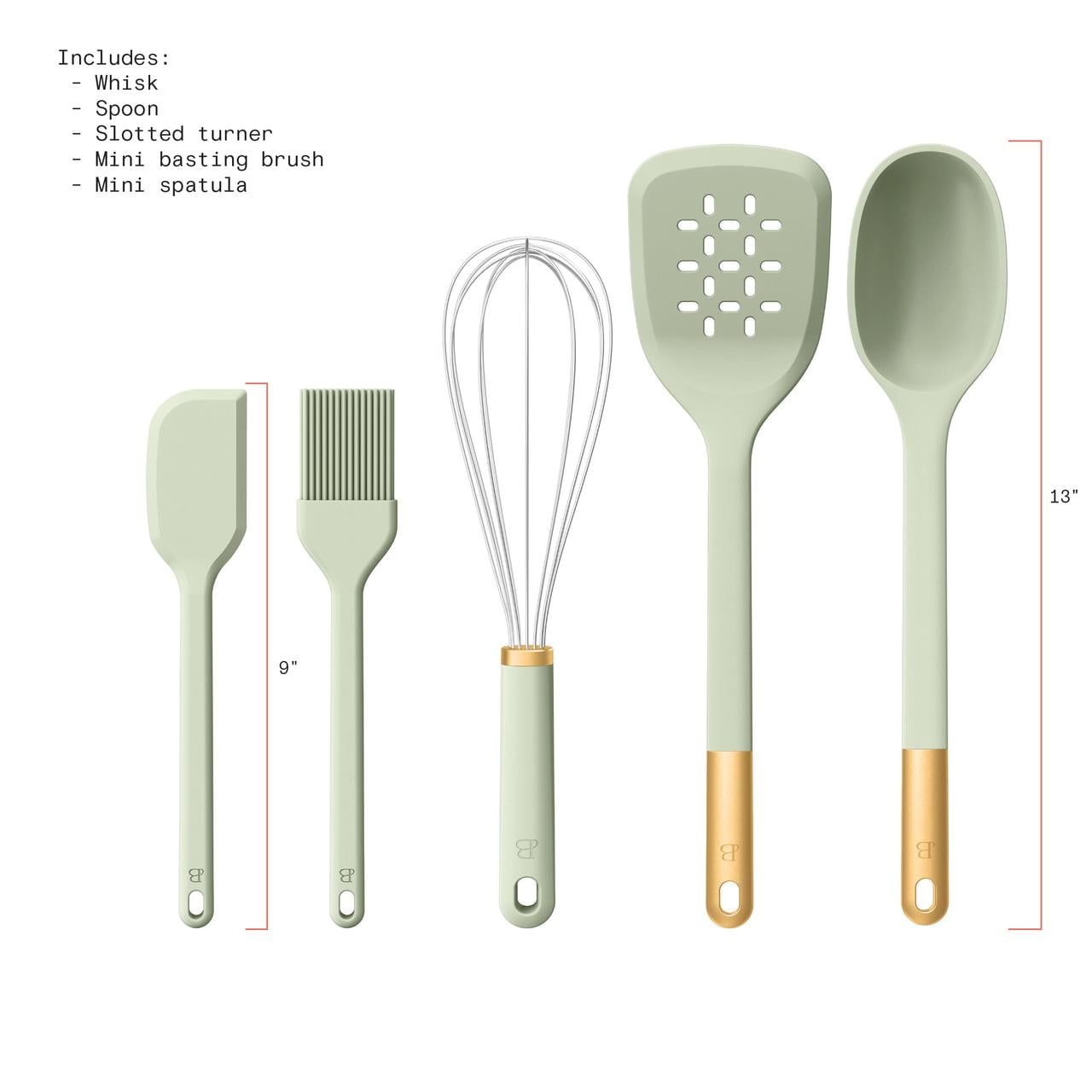 1.Includes slotted turner, spoon, mini spatula, whisk, and mini basting brush