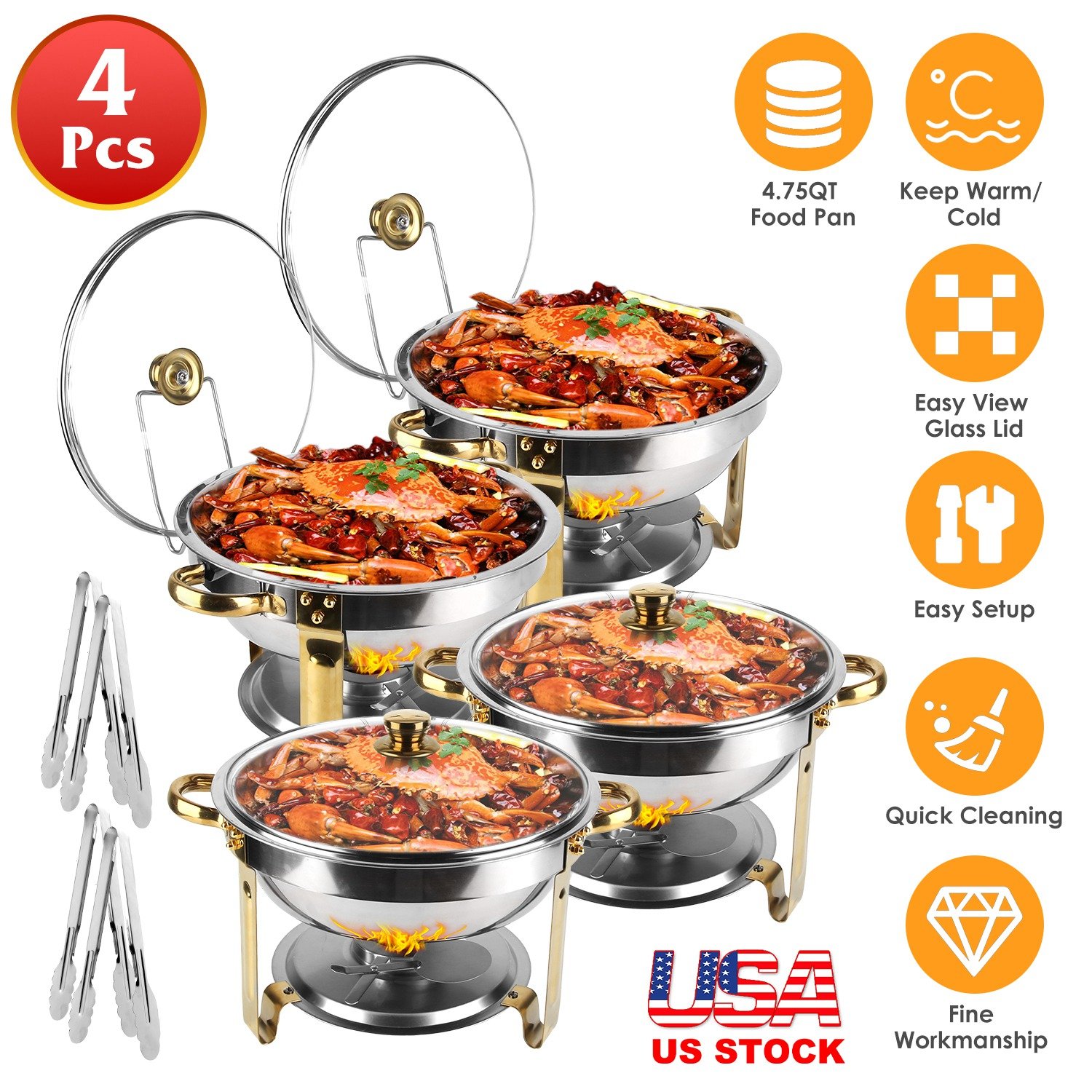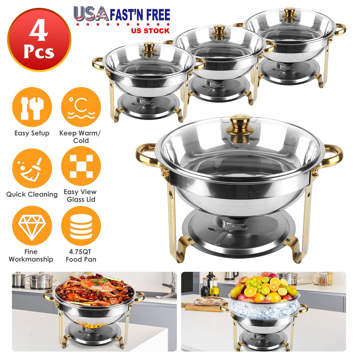 Home > 4Pcs Chafing Dish Buffet Set 4.76QT Round Buffet Servers Food Warmer Stainless Steel Catering Chafer with Glass Lid for Warming Cooling Gatherings Ban