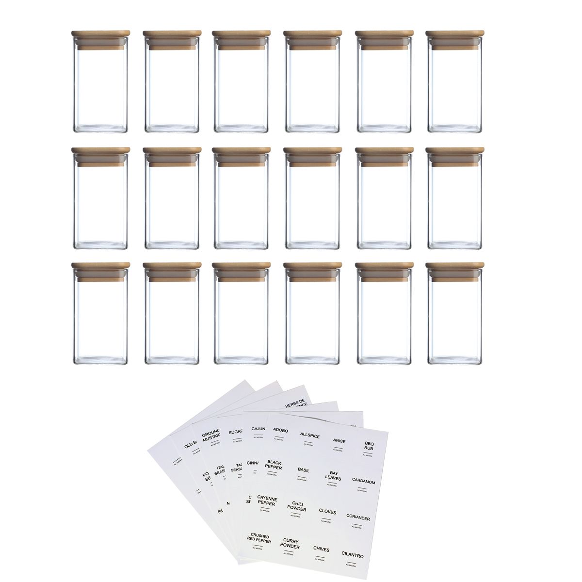 Home > 18 PCS Square Seasoning Jar Pepper Seasoning Bottle Pepper Powder Bottle 240ml Bamboo Wood Glass Seasoning Tank Square Spice Bottle