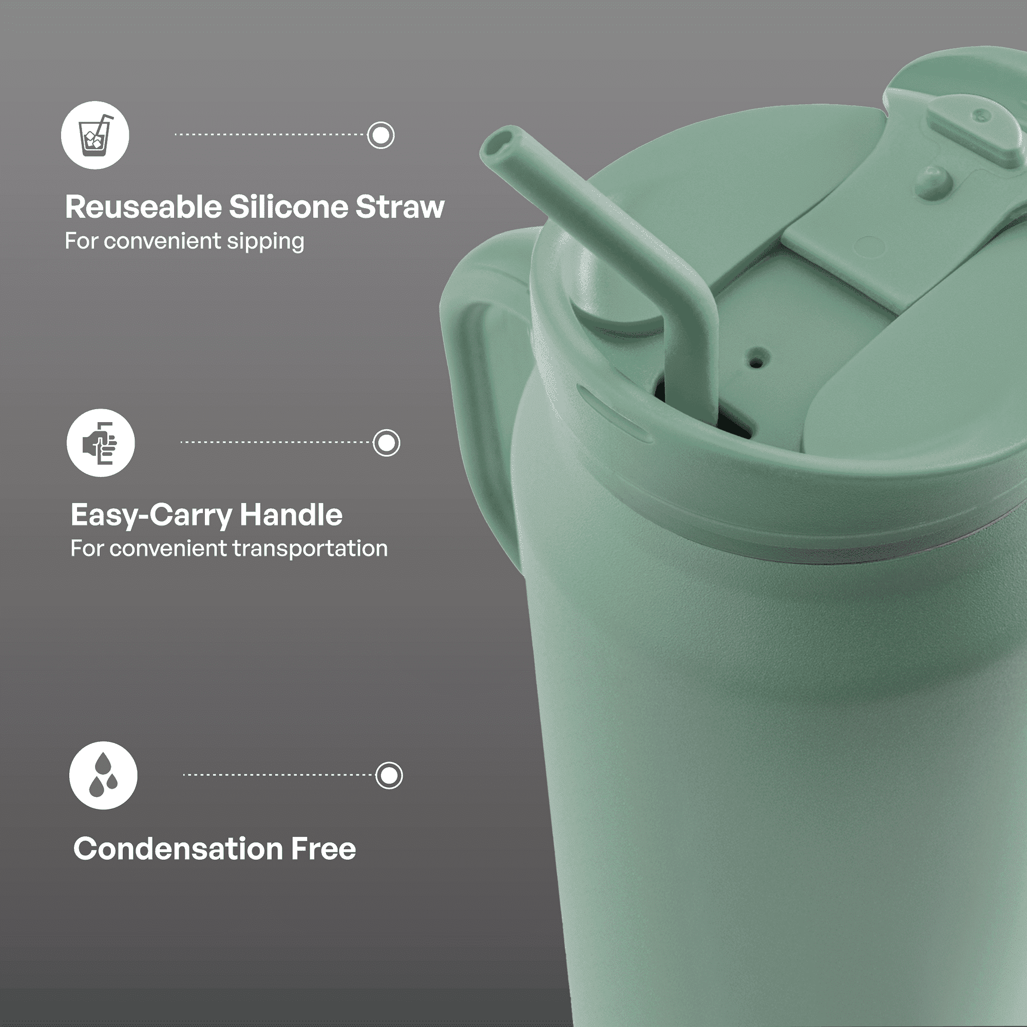 Home > Stainless Steel Basin Travel Mug with Silicone Straw 30 oz, Sage