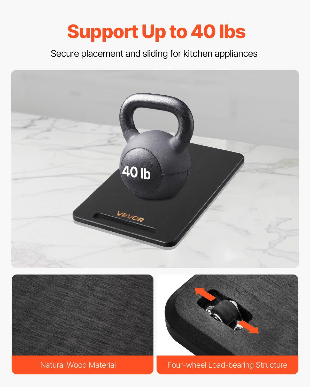 Made of durable material with a 0.7-inch thick design, this appliance slider supports up to 40 lbs. It's ideal for heavy kitchen appliances, making adjustments easy without wobbling.