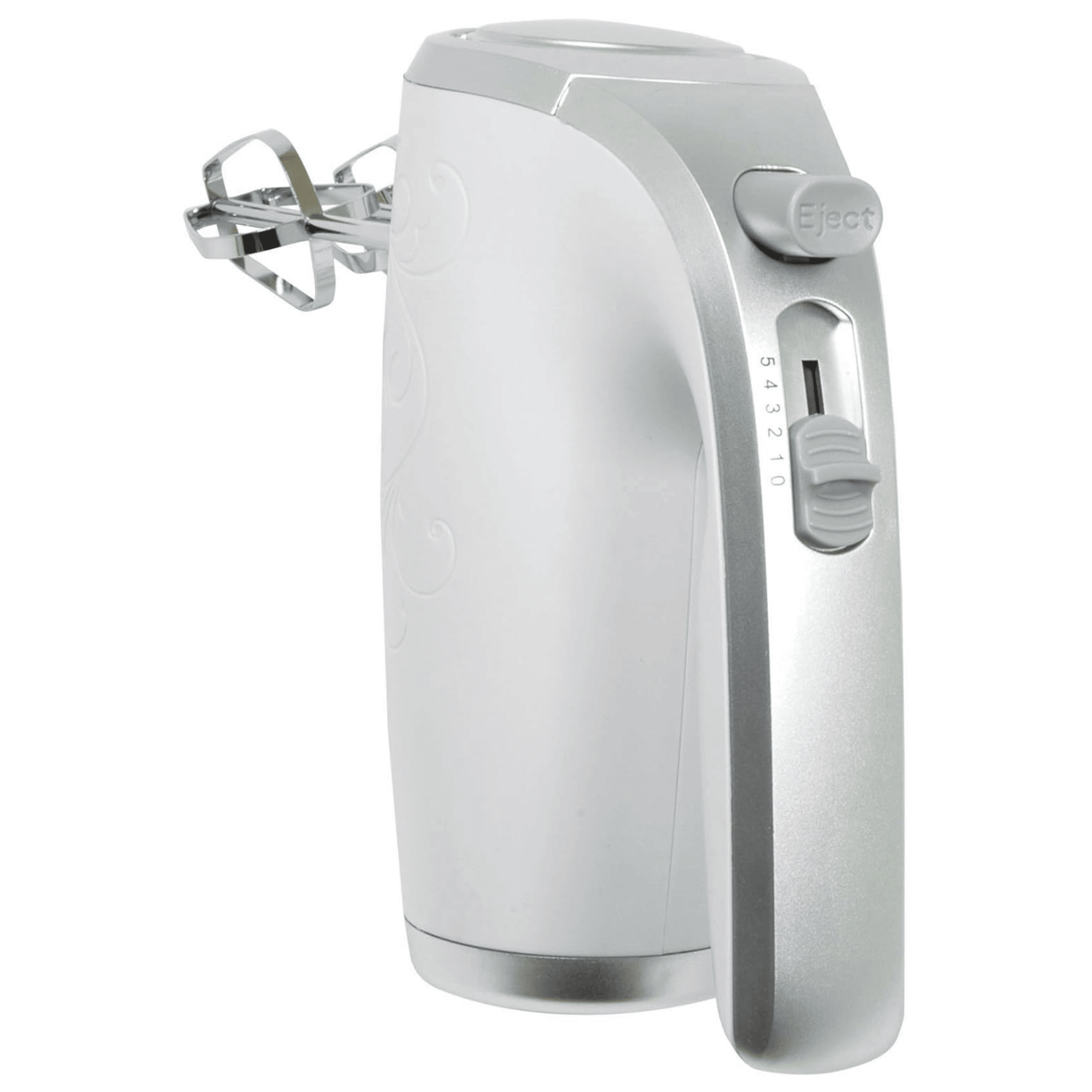 The Better Chef 150-watt hand mixer with stylish silver accents offers versatility with its 5-speed settings, allowing you to mix, blend, whip, and more with ease. Its powerful 150W motor is capable of handling most mixing tasks efficiently. Cleanup is simplified thanks to the stainless steel beaters and dough hooks, which are easy to clean. Additionally, the mixer is designed for convenience, featuring an ergonomic handle and thumb-switch speed controls that enable one-handed operation, enhancing usability in the kitchen.