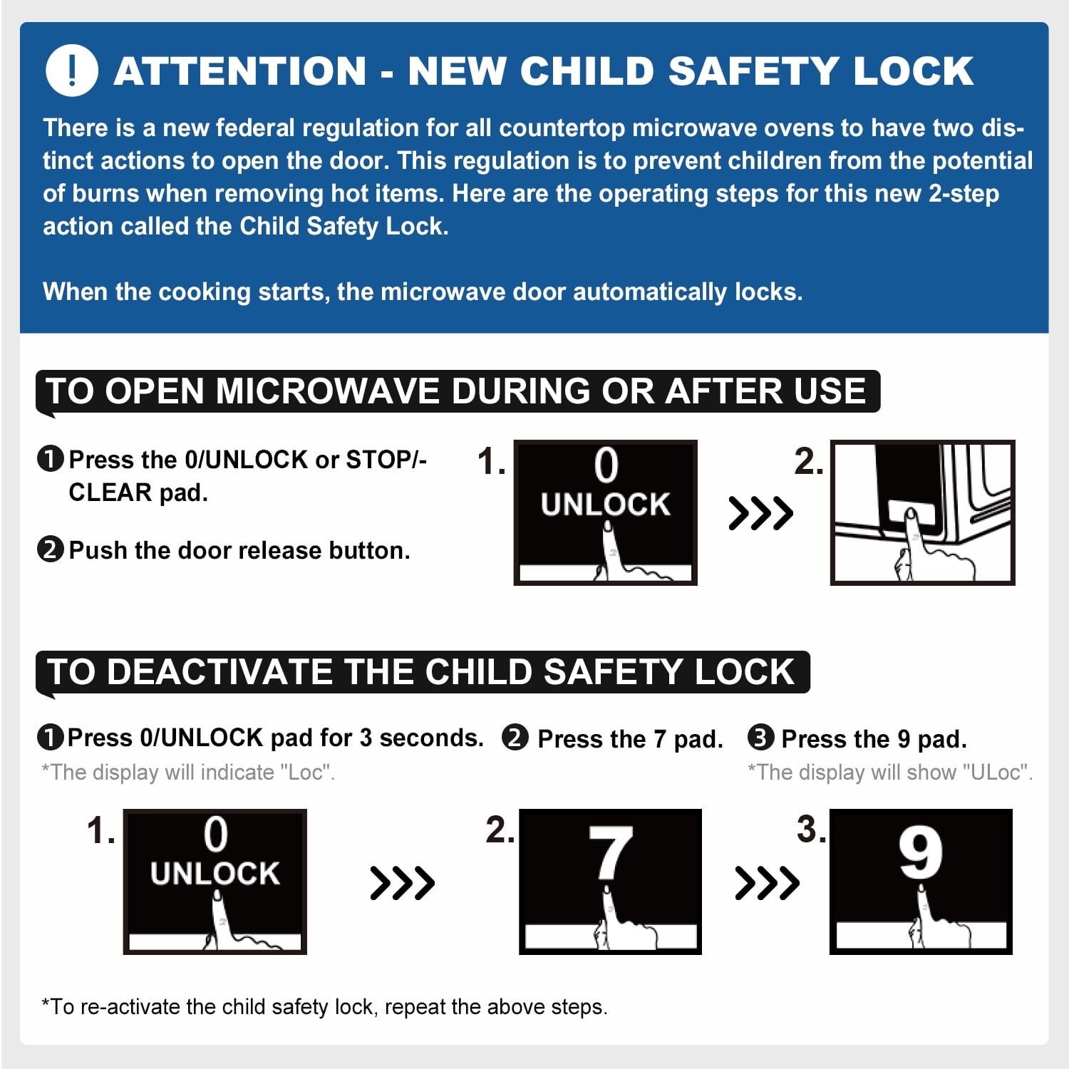 Compact Capacity: 0.7 Cu ft capacity, ideal for small kitchens, dorm rooms, offices, or rec rooms.Powerful Performance: 700-Watt power with 10 different power levels for versatile cooking.Convenient Features: Includes LED display, kitchen timer, and clock for easy time management.Defrost Options: Weight and time defrost settings for precise thawing of foods.Safety Lock: Child-safe lockout feature to prevent accidental use.Quick Access: Push-button door opening and 30-second one-touch option for quick and easy access.Quick-Set Menus: 6 quick-set menu buttons for common cooking tasks.Color Choices: Available in Black, Red, or White to match various kitchen decors.