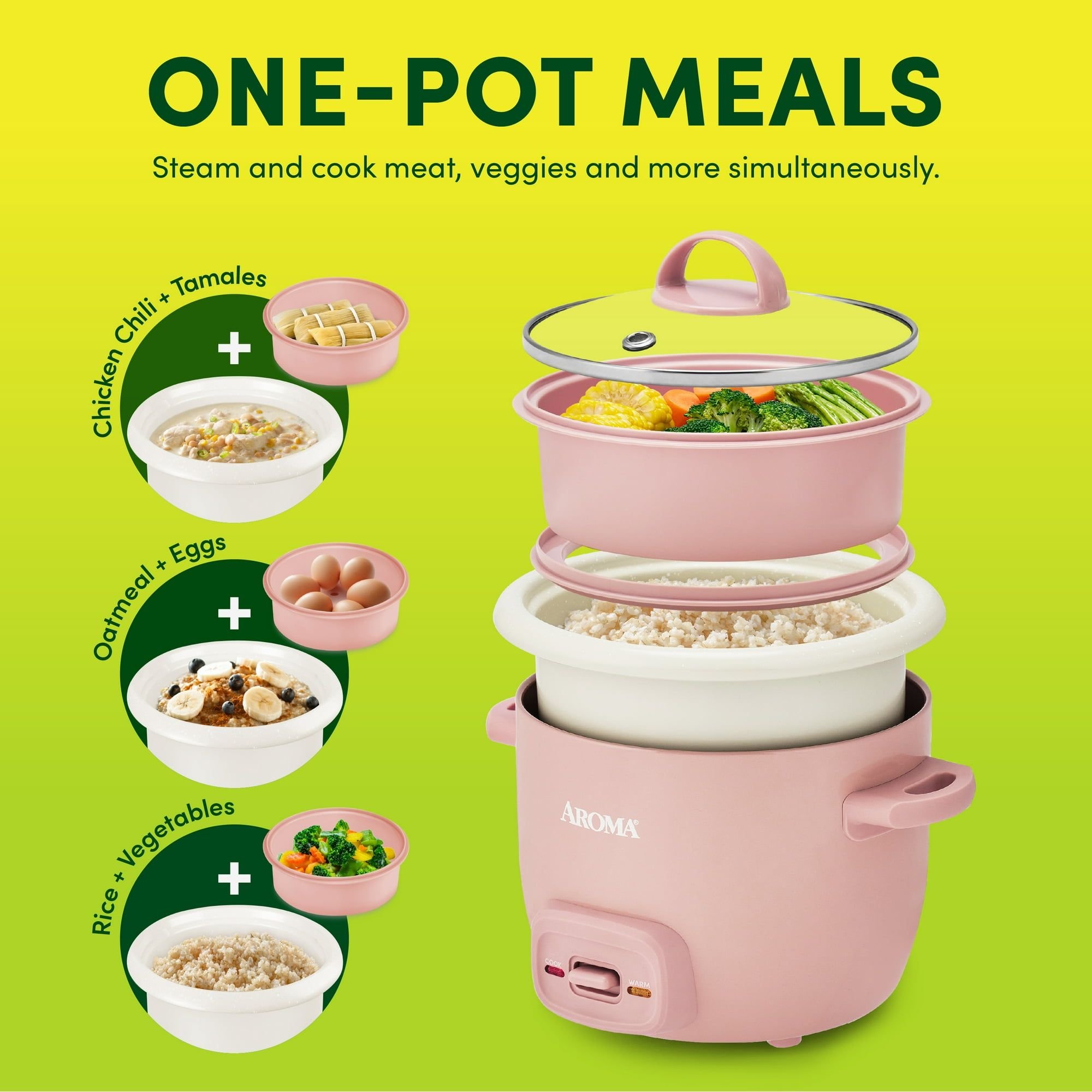 2-Cup Uncooked Rice Cooker & Food Steamer with Bonded Granite® Nonstick Ceramic & Pop-Up Steam Tray - Pink 2-Cup Uncooked Rice Cooker & Food Steamer with Bonded Granite® Nonstick Ceramic & Pop-Up Steam Tray - Pink 2-Cup Uncooked Rice Cooker & Food Steamer with Bonded Granite® Nonstick Ceramic & Pop-Up Steam Tray - Pink