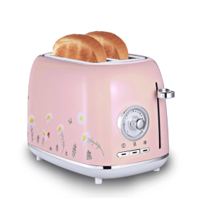 2 slice Vintage Toaster SUS304 Food grade 6 Browning level Fashion High Lift Bar Flower Watermark Painting Process 3 Features-Thaw / reheat / cancel